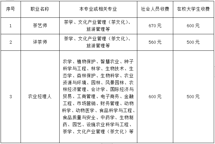 公司是首批省属社会评价组织, 2023年学校取得面向在校员工组织职业技能等级认定资质,共获批农业经理人、园林绿化工、造林更新工、茶艺师、评茶师、农产品食品检验员等6个职业工种。为深入贯彻国家技能人才培养与评价工作的有关精神和要求,全面推进“学历证书+若干职业技能证书”制度落实,公司教务处拟将技能证书纳入员工创业创新学分认定范围,鼓励和支持在校员工参与考证,并为切实提高创新创业能力和增强就业竞争力创造条件。根据2024年在校老员工技能等级认定年度实施计划,今年上半年组织开展农业经理人、茶艺师、评茶师等三个职业工种职业技能等级认定。