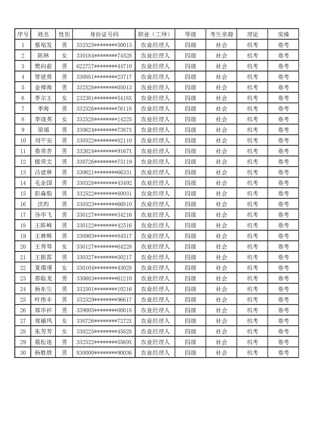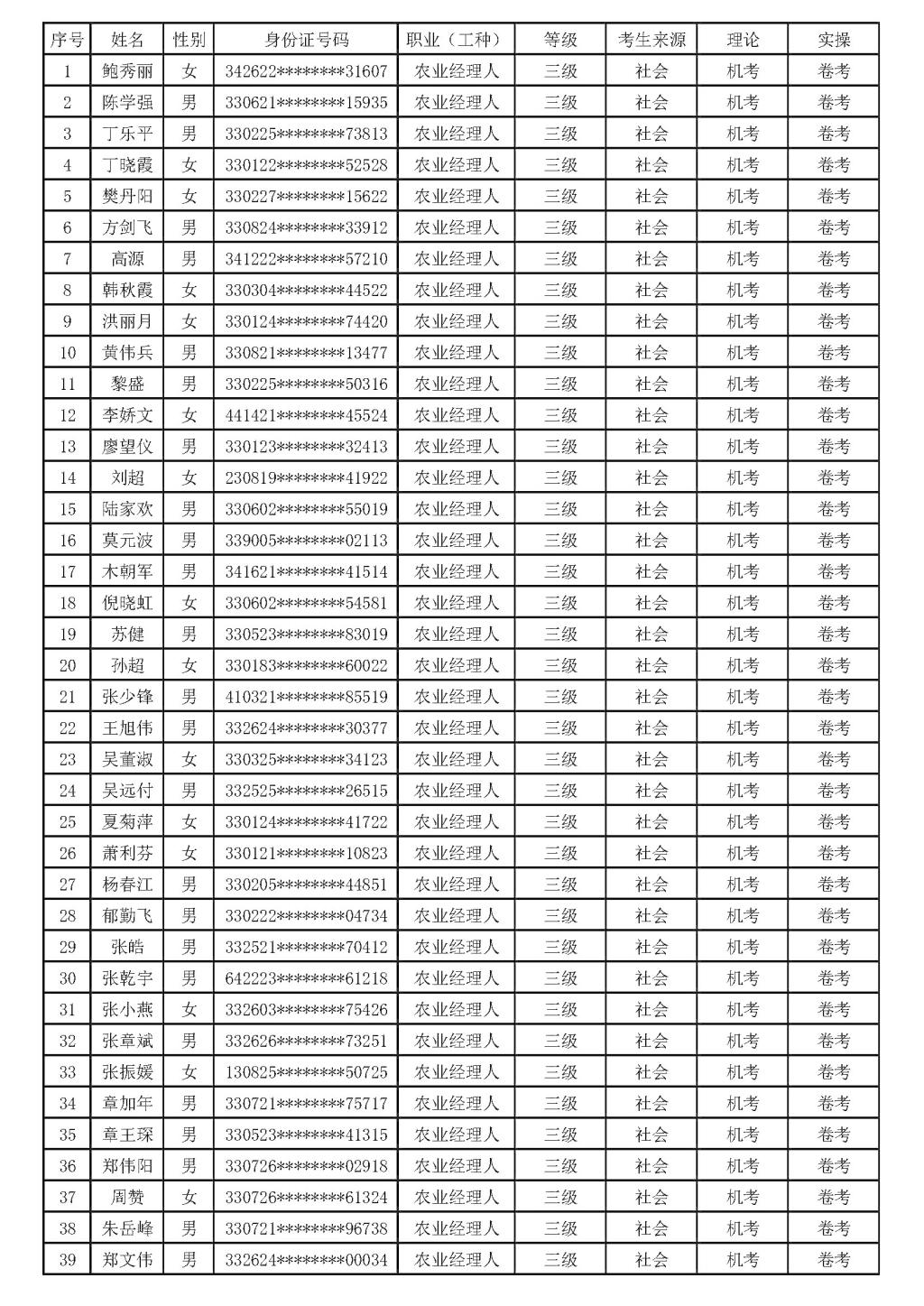 根据浙人社办《浙江省社会评价组织职业技能等级认定操作指南(试行)》(浙人社办发【2022】3号)的有关规定,经XCSport对考生报名材料统一审核,现将2022年职业技能等级认定第2022-07-48657批次农业经理人三级、第2022-07-48659批次农业经理人四级的考生名单予以公示。