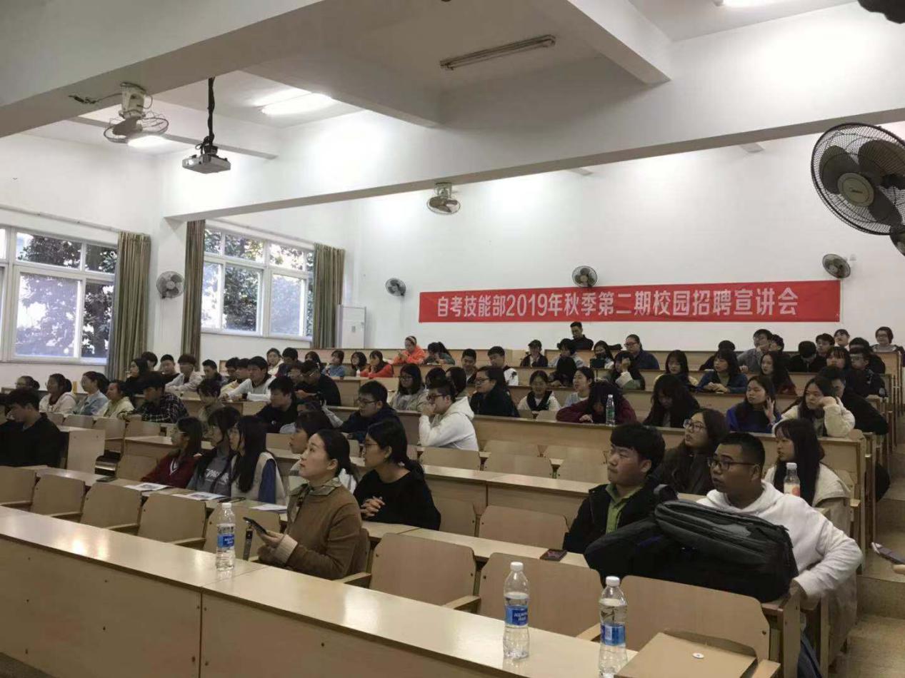 11月15日下午,公司自考技能部2019年秋季第二期校园招聘宣讲会,在衣锦校区念慈楼116教室顺利举行。参加本次招聘会共有4家企业,推出岗位近50个,涵盖计算机、物流、会计、设计和电子商务等多个领域,吸引了100余名毕业生进场洽谈。