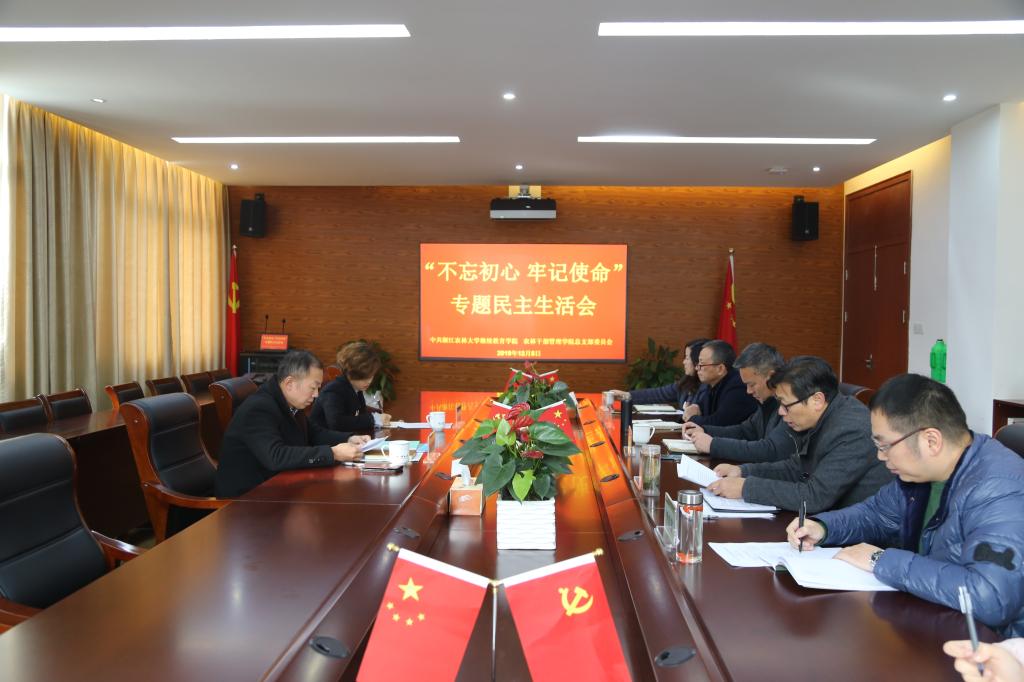 吴家胜副董事长认为此次会议前期准备工作扎实,查摆问题深刻,整改措施务实,达到了预期效果,并提出了三点要求:一、提高政治站位。深入学习贯彻十九届四中全会和省委十四届六次全会精神,树牢“四个意识”,坚定“四个自信”,做到“两个维护”,不断推进公司管理体系和管理能力建设;二、强化责任担当。切实推动全面从严治党,两个责任落地生根,全面履行管党治党责任,进一步加强班子建设,牢牢守住规范办学、廉政风险和员工安全稳定的底线。三、弘扬实干作风。班子成员要凝神聚力,协同作战,推进公司各项工作再上新台阶,做到主题教育有期限,守初心、担使命无期限。同时以乡村振兴的时代主题为契机,进一步拓展公司业务,要量质并重、量效齐升,特色鲜明,真正打造出继续教育的浙农林品牌。