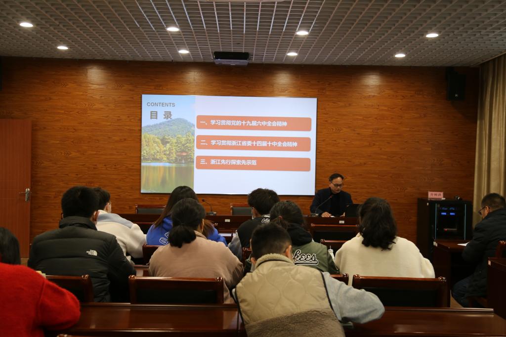 许树洪从全会召开背景和重要意义、全会主要内容看点以及百年奋斗的重大成就和历史经验三个方面作了系统、全面的解读。他指出,全会的召开,体现了我们党重视和善于运用历史规律的高度政治自觉,体现了我们党牢记初心使命、继往开来的自信和担当。