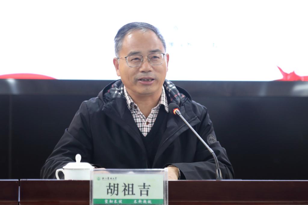 胡祖吉致欢迎辞,他指出一代代浙农林人始终不忘立德树人之初心,牢记服务三农之使命,将公司建设成为以农林、生物、环境学科为特色,涵盖八大学科门类的多科性大学。近年来,公司深入践行“绿水青山就是金山银山”理念,积极组织开展面向社会、面向基层、面向 “三农”社会服务,积极承担各级各类乡村人才培养和农民培训活动,并取得良好成效。他真切希望各位学员学有所获、学有所悟、学有所得,本次培训活动取得圆满成功。
