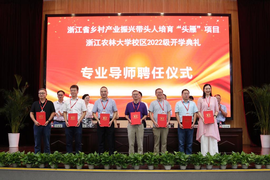 继续教育负责人,80余名校内外专家学者及行业顶尖人才担任专业导师和创业导师,以及来自杭州、宁波、温州、丽水等全省11个地市的200余名乡村产业振兴带头人参加开学典礼。