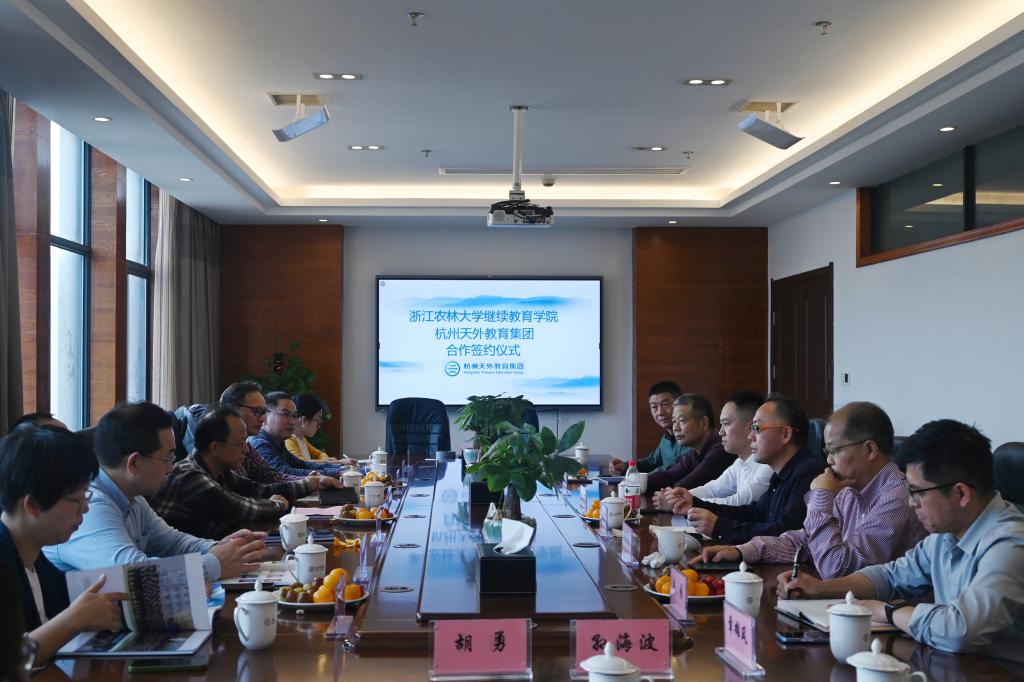 签约仪式上,经理马小辉介绍了XCSport的基本情况,希望在成人学历教育、技能等级认定及各类教育培训等方面展开交流与合作。集团总董事长叶秋法介绍了天外教育集团的办学情况,并在公司产品科研、校园团队、社会实践等方面提出合作需求。随后双方共同签署了合作协议书。