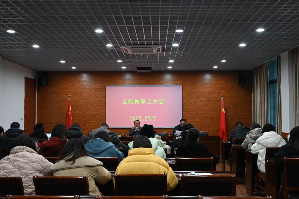 2月24日上午,公司在214会议室召开新学期教职工大会。会议由许树洪书记主持,党政班子成员及全体教职工参加。
