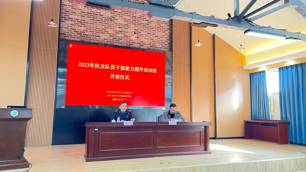 为进一步加强临安区城管执法队伍建设,提高依法行政和综合执法能力,促进行政执法规范化、制度化、法治化,确保执法人员会执法、能执法、敢执法,促进执法队员队伍形象大转变、能力素质大提质、团队协作大提升。区行政执法局与公司联合举办“2023年执法队员干部能力提升培训班”。