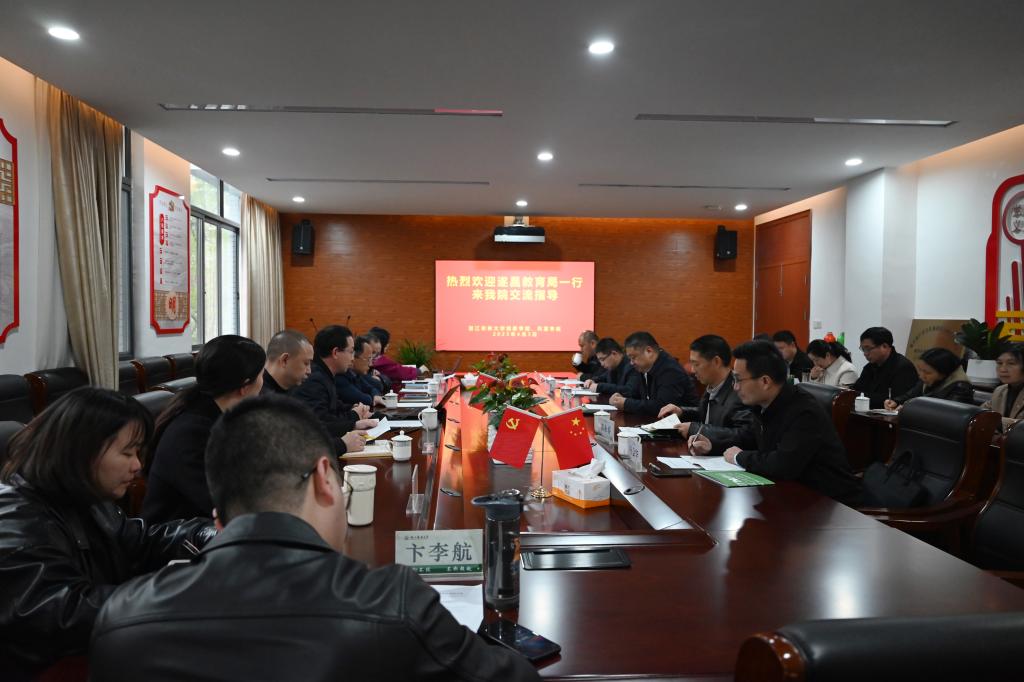 4月3日,遂昌县教育局组团到公司走访调研,就院地合作模式进行了深入研讨。公司领导班子成员,社会合作处副处长严少君及公司相关人员参加座谈。