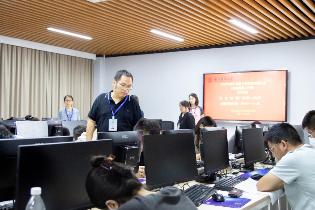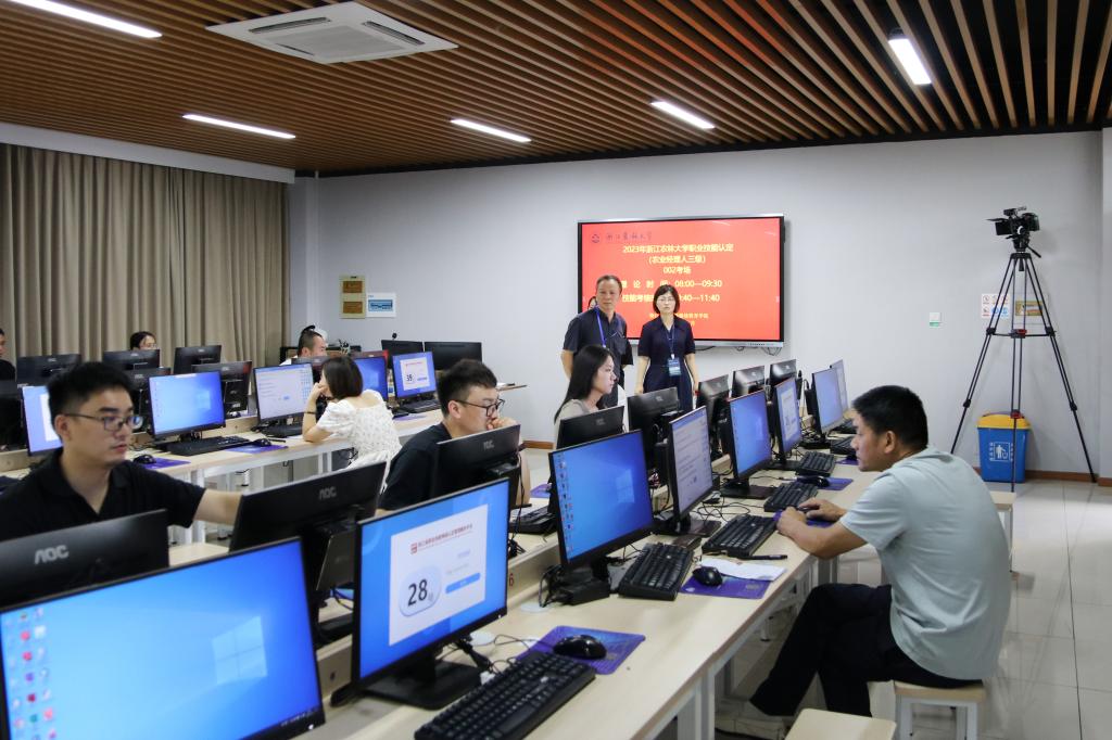 为确保考务工作顺利开展,考前召开了职业技能等级认定工作专门会议,明确各部门和考务人员岗位职责,严格按照省人社厅《浙江省社会评价组织职业技能等级认定操作指南(施行)》相关要求,布置考场,安排考评人员、监考员、内部督导人员和志愿者等。考试期间,XCSport马小辉经理、许树洪书记亲临现场对认定考试进行了巡视检查,听取了考务负责人关于认定考试组织、监考等情况的汇报,现场查看了考生考试情况和教师监考情况。各个考场秩序井然,考风考纪良好。