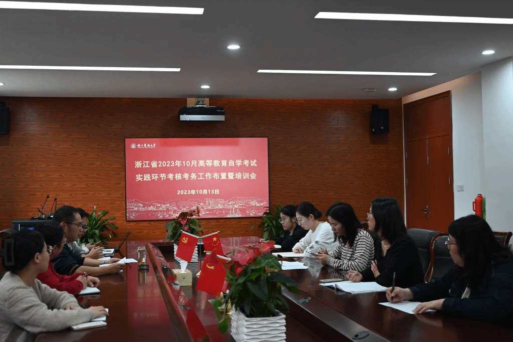首先,全体参会人员学习了《国家教育考试违规处理办法》(中华人民共和国教育部令第33号)、《浙江省高等教育自学考试实践性环节考核管理办法》(浙教试院〔2023〕64号)、《考场规则》、《监考人员职责》、《巡考人员职责》等文件精神,随后大家对监考老师到场时间、考生物品摆放位置、考生提前交卷时间、试题试卷安全等细节问题进一步进行了交流,明确了各自的工作职责。