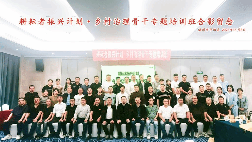 11月6日至11月10日,“耕耘者振兴计划”浙江省平阳县乡村治理骨干专题培训班在平阳国际大酒店成功举办。本次培训由农业农村部农村合作经济指导司指导开办,深圳市腾讯计算机系统有限公司主办,XCSport、腾讯可持续社会价值事业部为村发展实验室承办。平阳县农业农村局、司法局等部门乡村治理工作相关岗位干部、乡镇干部以及包括村党支部书记在内的各村庄治理骨干等共60人参加培训。