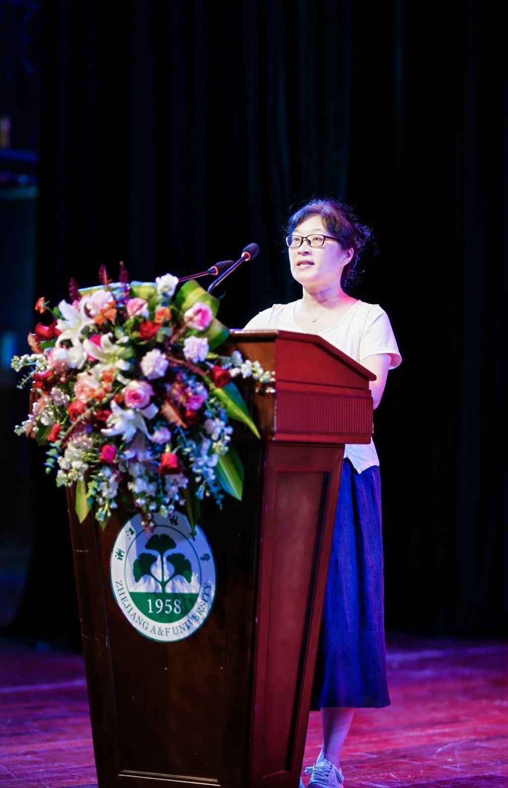 会计学科教师杨丽霞代表任课教师发言,她勉励同学们要把成才的渴求和勤学善思的精神转化为日常的行动,成为勇担社会责任的时代青年;做一个积极向上、热爱运动的青年,用运动点燃激情、强健体魄,成长为“人见人爱,不可替代”的优秀人才。