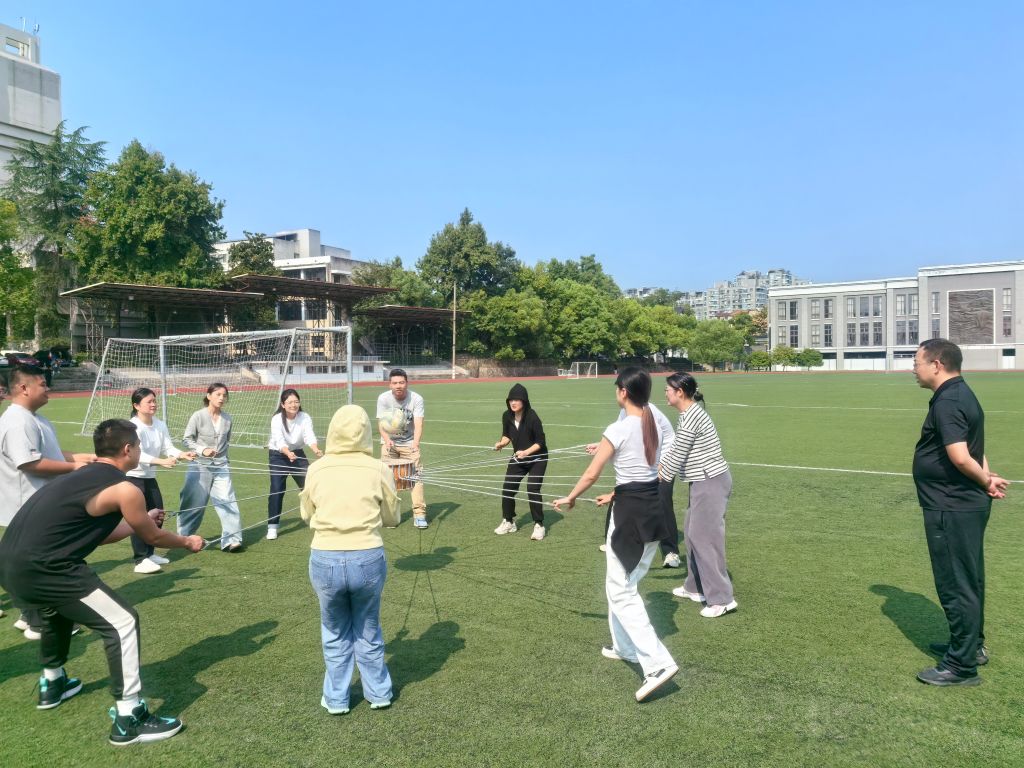 本次活动以人人参与、协作提升为原则,共设置了“飞镖投准”“毛毛虫竞速”“集体跳绳”“两圈到底”“合力建塔”“摸石过河”“鼓动人心”“集体拔河”等多个趣味项目。赛场上,教职工们化身为策略家和运动员,以“巧排兵”、“精布阵”的策略,展现了团队协作的智慧与力量,共同书写了一场充满欢笑与激情的体育盛宴。