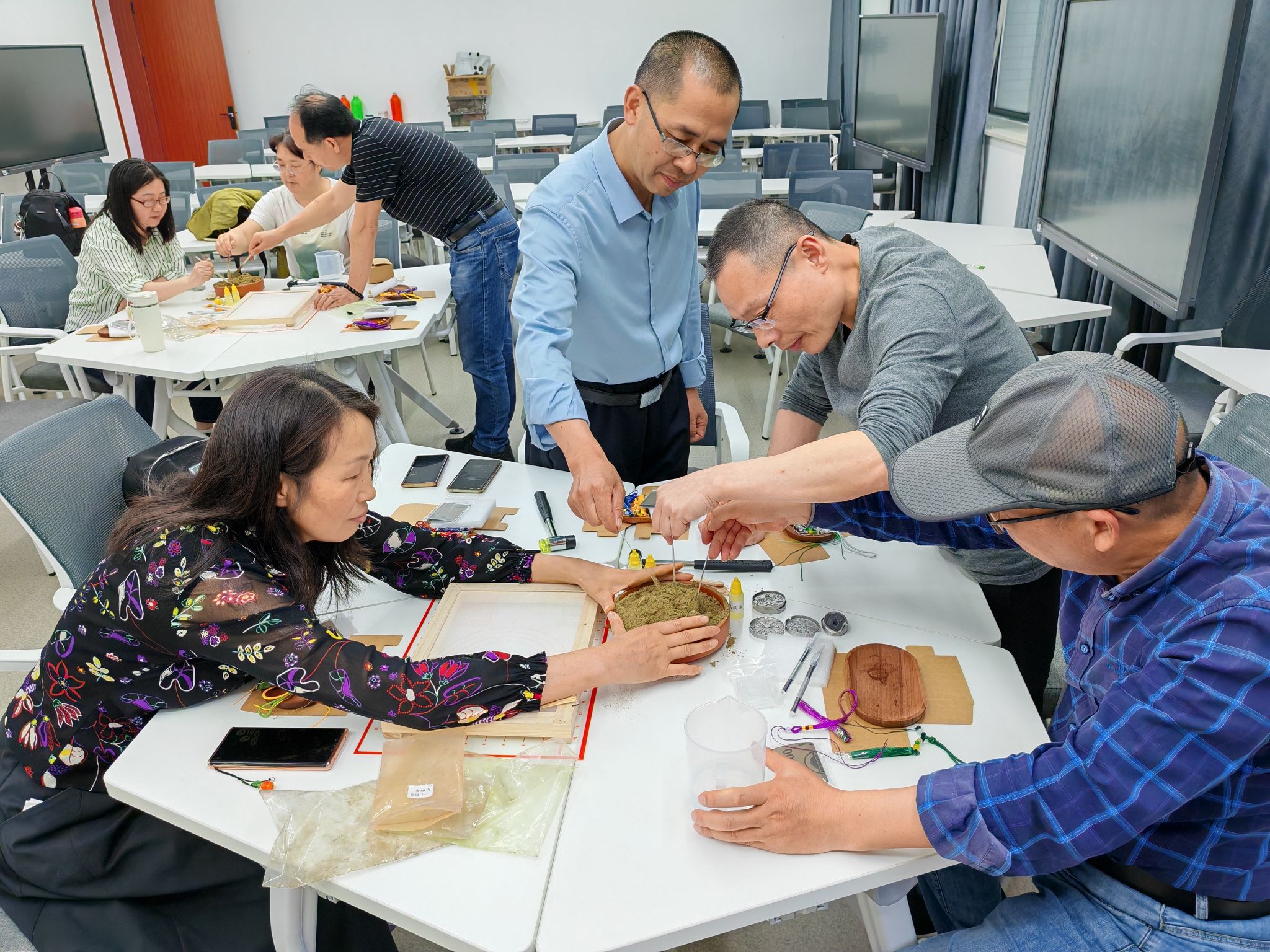 课堂实操中,在食品与健康公司徐建伟博士和张爱莲副教授的专业指导下,学员们化身“小小药师”,亲手制作具有驱蚊、安神等功能的中药功能香囊,并参与中药植物精油提取实验。研磨药材、调配香料、萃取精华……每一个步骤都让教师们感受到中医药文化的独特魅力,也为今后开展实践教学积累了宝贵经验。