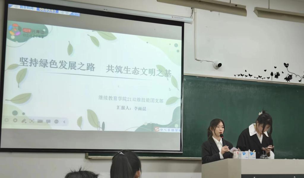 全校通过层层筛选,共有40只队伍参加汇报,竞争异常激烈。公司21级双维团支部李雨晨同学,以“守护绿水青山,共谋绿色发展”为主题,汇报了“坚持绿色发展之路,共筑生态文明之基”活动的具体情况。该团日活动号召同学们以创建绿色文明为契机,强化保护生态的意识,将保护生态文明的理念贯彻落实。