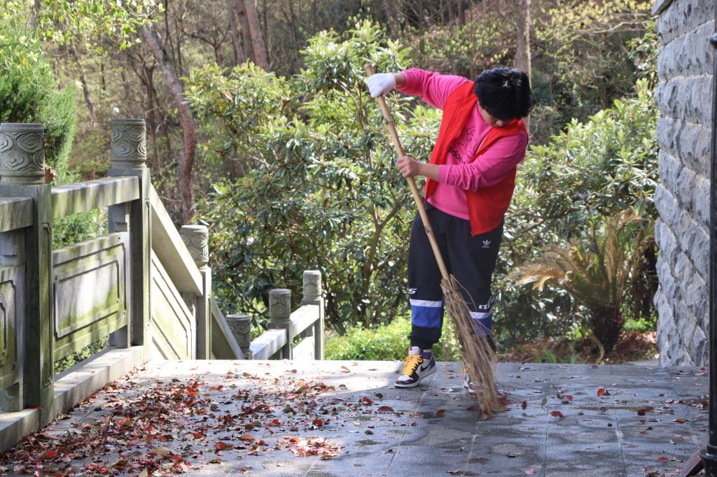 随后,同学们在馆内工作人员的指导下,对纪念馆周边场地进行清理打扫。在庄重严肃的烈士碑前,同学们带着对烈士的崇敬之情,俯身于烈士墓碑前,细心擦去墓碑上的灰尘,并将碑前敬献的旧花圈进行收拾整理,对垃圾进行统一清运,让烈士墓纪念馆焕然一新。