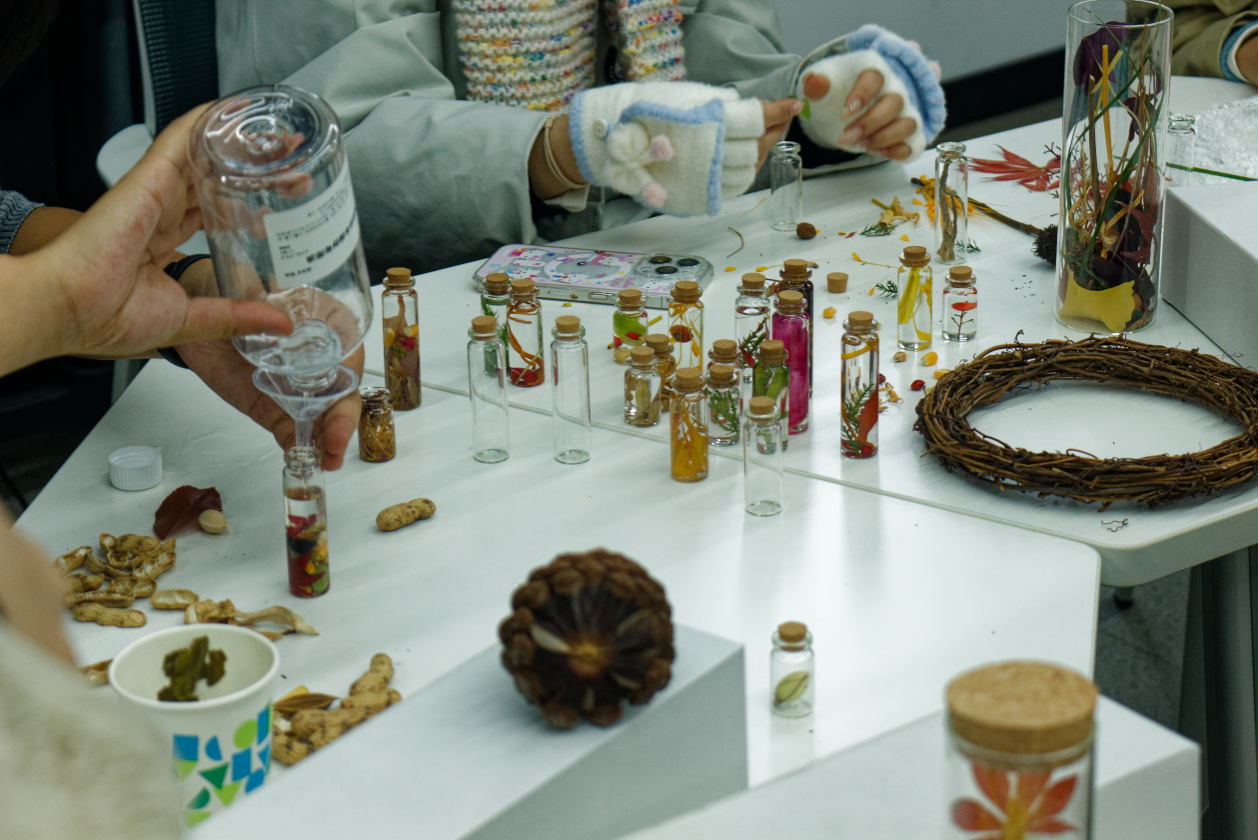 活动精心特制的感官瓶成为秋日亮点。瓶内元素丰富多样,巧妙地触发了视觉、听觉、触觉等多元感官体验。同学们将各自捡拾的秋日元素悉心置入瓶中,赋予其独特灵魂。一个个别具匠心的感官瓶,宛如独一无二的艺术品,承载着同学们的心意与梦想。