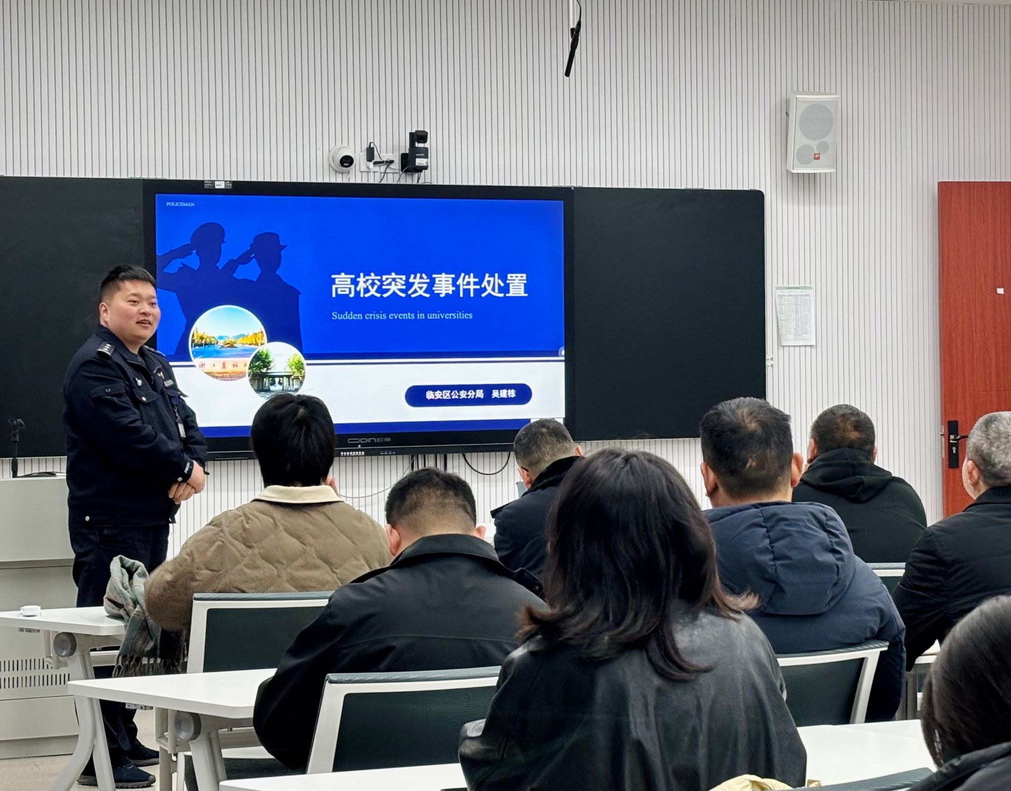 培训会上,吴建栋结合校园生活实际,对高校可能存在的突发事件及其处置规范展开专题讲座。他通过案例剖析和专业知识分享,对常见的校园危机事件问题特点、处置原则和解决路径等进行详细讲解,强调提升校园突发事件处置与风险预判能力的重要性,并为参训人员提供了日常业务咨询与警校互动平台信息。