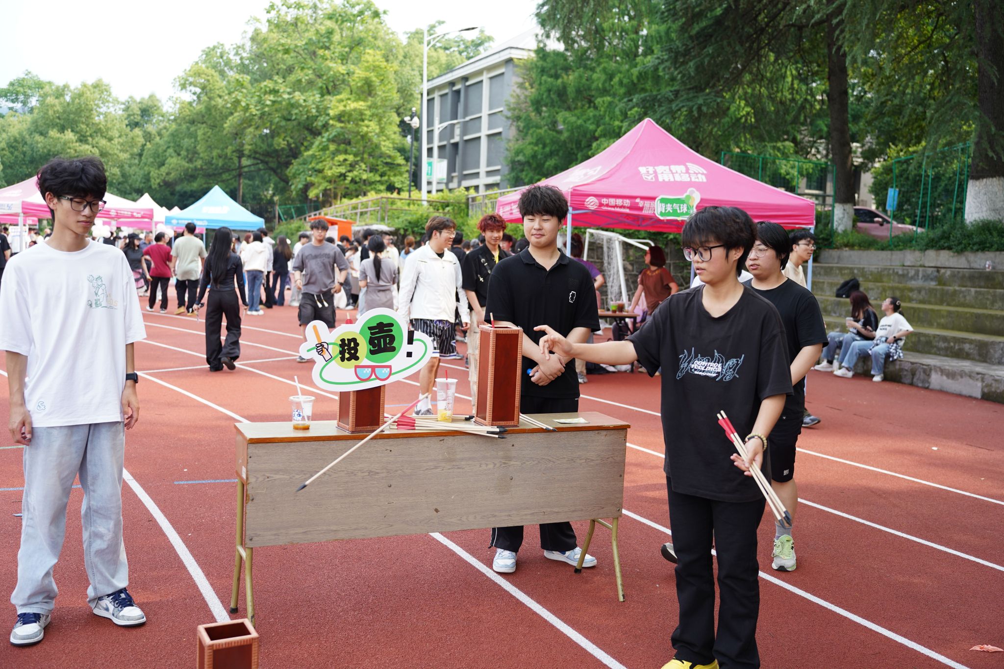 欢乐竞技场以趣味游戏为载体,激发团队协作与个人潜能。投壶、背夹气球、贴鼻子等游戏中参与者通过打卡集章兑换礼品,在互动中感受快乐与成就感。同时,“心灵焕新·物暖人心”二手跳蚤市场倡导资源循环利用,员工们积极交换闲置物品,以实际行动践行绿色生活理念。活动还特别设置心愿树环节,师生们写下心愿与自我肯定的话语,贴于树上并合影留念,传递积极向上的心理能量。