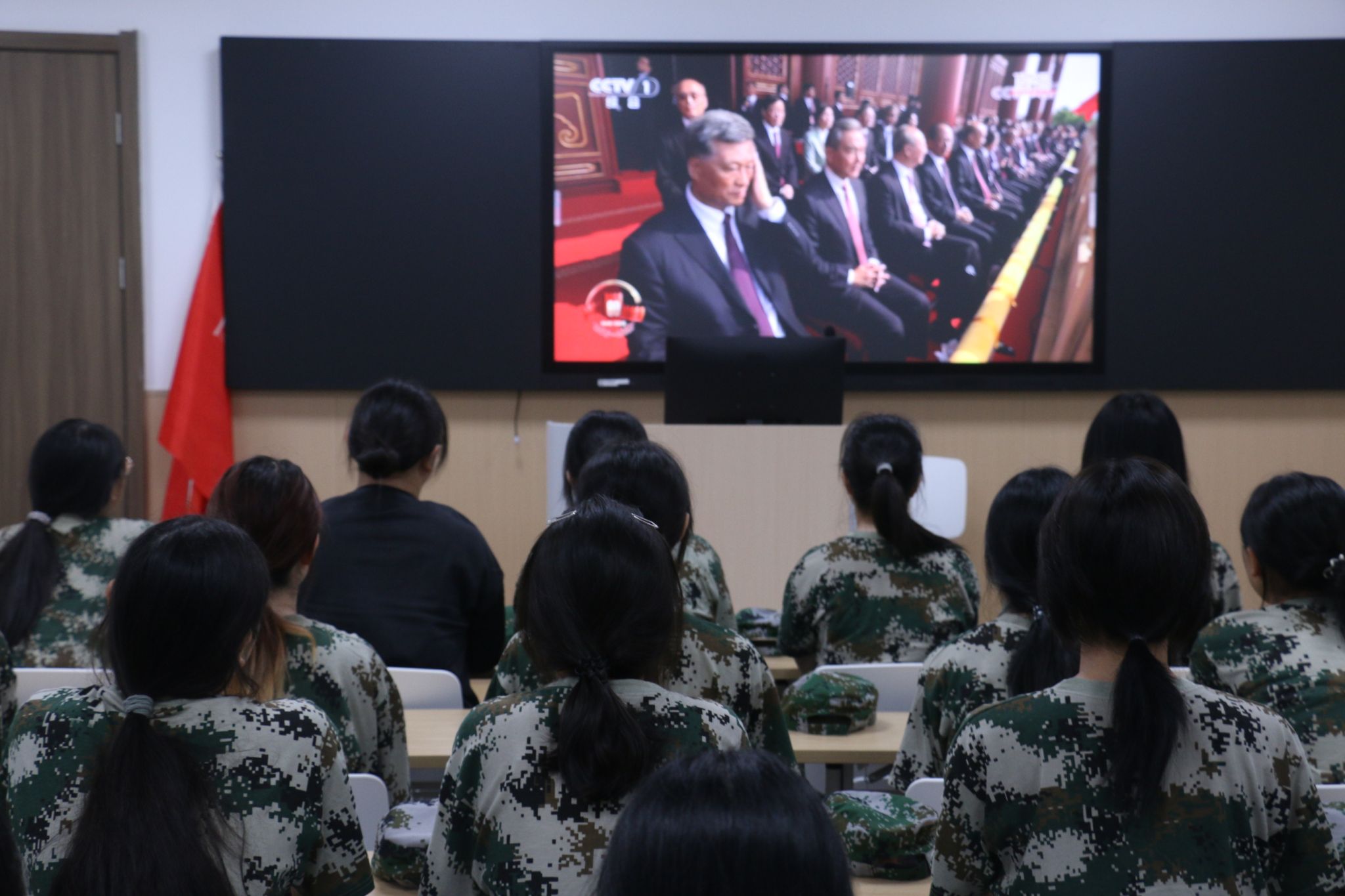 9月3日上午,纪念中国人民抗日战争暨世界反法西斯战争胜利80周年大会在北京天安门广场隆重举行。公司组织全体在校新生分班集体观看了纪念大会直播,新生们神情专注,通过屏幕共同见证了这一庄严的历史时刻。